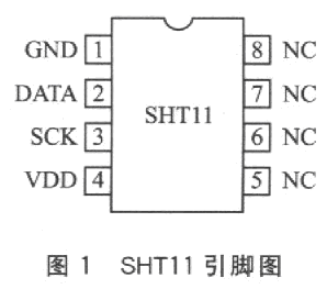 溫濕度傳感器SHTll集溫度傳感器和濕度傳感器于一體,因此采用SHTll進(jìn)行溫濕度實(shí)時(shí)監(jiān)測的系統(tǒng)具有精度高、成本低、體積小、接口簡單等優(yōu)點(diǎn);另外SHTll芯片內(nèi)部集成了14位A/D轉(zhuǎn)換器,且采用數(shù)字信號(hào)輸出,因此抗干擾能力也比同類芯片高。該芯片在溫濕度監(jiān)測、自動(dòng)控制等領(lǐng)域均已得到廣泛應(yīng)用。