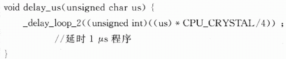 通過以上宏定義,可以實(shí)現(xiàn)SCK和DATA總線的各種輸入和輸出狀態(tài)。為了模擬該二線串行數(shù)字協(xié)議,還需要一個(gè)延時(shí)函數(shù)。WINAVR庫函數(shù)提供了一個(gè)延時(shí)函數(shù)_delay_loop_2(unslgned char s),該延時(shí)函數(shù)運(yùn)行用4個(gè)時(shí)鐘周期,所以白定義延時(shí)1μs函數(shù)可以定義如下:#deftne CPU_CRYSTAL 7.3728