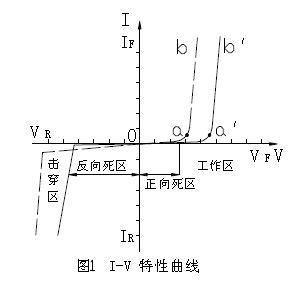 為反向飽和電流。V>0 時,V>VF 的正向工作區(qū)IF 隨VF 指數(shù)上升,