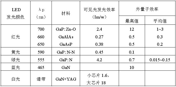 以下列出幾種常見LED 流明效率(可見光發(fā)光效率):