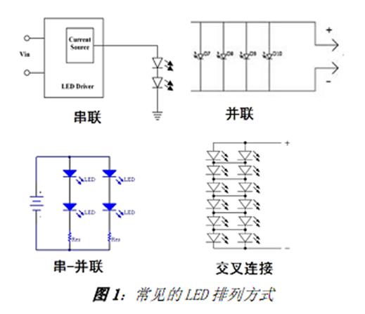 另外,應(yīng)用中通常會(huì)使用多顆LED,這就涉及到多顆LED 的排列方式問(wèn)題。各種排列方式中, 首選驅(qū)動(dòng)串聯(lián)的單串LED, 因?yàn)檫@種方式不論正向電壓如何變化、 輸出電壓(Vout)如何“漂移”,均提供極佳的電流匹配性能。
