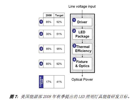 LED 驅(qū)動(dòng)器本身也在不斷演進(jìn), 著重于進(jìn)一步提高能效、 增加功能及功率密度。 美國(guó)“能源之星”的固態(tài)照明規(guī)范提出的是照明器具級(jí)的能效限制,涉及包括功率因數(shù)在內(nèi)的特定產(chǎn)品要求。而歐盟的IEC 61347-2-13 (5/2006)標(biāo)準(zhǔn)針對(duì)采用直流或交流供電的LED模塊的要求包括: