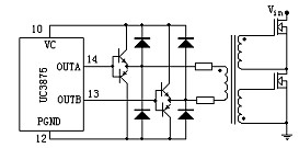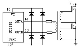 在驅(qū)動(dòng)小功率的MOSFET和IGBT時(shí),如果控制芯片的驅(qū)動(dòng)信號是圖騰柱輸出方式,且可提供一定的驅(qū)動(dòng)電流,那么可以直接由控制芯片來驅(qū)動(dòng)變壓器,如圖1所示: