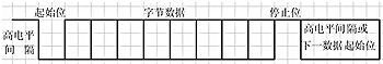 數(shù)據(jù)傳輸時使用單線串行輸出,用口線模擬串行發(fā)送,發(fā)送字節(jié)時在口線上依次發(fā)送如圖4所示數(shù)據(jù)(數(shù)據(jù)為0時拉低口線電平,數(shù)據(jù)為1時拉高口線電平),位持續(xù)時間根據(jù)波特率計算,本應(yīng)用中設(shè)定波特率為9600b/s。當(dāng)沒有數(shù)據(jù)發(fā)送時,輸出口線上維持高電平。