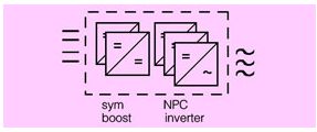 這里標(biāo)準(zhǔn)的應(yīng)用是使用三相全橋電路。考慮到直流母線電壓會(huì)達(dá)到1000v,那開關(guān)器件就必須使用1200v的。而我們知道,1200v功率器件的開關(guān)速度會(huì)比600v器件慢很多,這就會(huì)增加損耗,影響效率。對(duì)于這種應(yīng)用,一個(gè)比較好的替代方案是使用中心點(diǎn)箝位(npc=neutral point clamped)的拓?fù)浣Y(jié)構(gòu)(見圖8)。這樣就可以使用600v的器件取代1200v的器件。