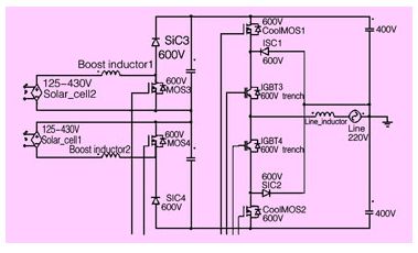 ●雙boost電路都是由mosfet(600v/45 mω)和sic二極管組成;