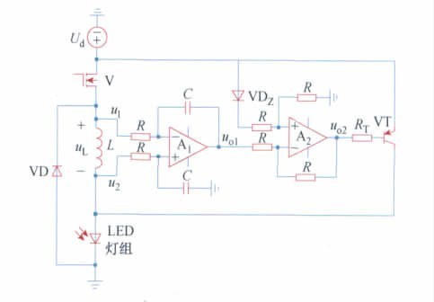 LED 燈組為n 個大功率LED 串聯(lián)連接,UO =nUF為LED 燈組壓降; UF為單個LED 的導(dǎo)通壓降。