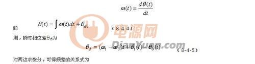 式中的ωi為輸入信號的瞬時振蕩角頻率,θi(t)和θO(t)分別為輸入信號和輸出信號的瞬時位相,根據(jù)相量的關(guān)系可得瞬時頻率和瞬時位相的關(guān)系為: