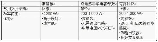 要提高主轉(zhuǎn)換器能效可以采用以下幾種方法。一是通過降低導(dǎo)通阻抗(開關(guān)損耗較高)和/或減小初級峰值電流和均方根電流來降低初級導(dǎo)通損耗;二是考慮采用軟開關(guān)技術(shù)降低開關(guān)損耗;三是通過減少整流器壓降(使用低正向壓降二極管或FET整流器)來降低次級損耗;四是采用更好的磁芯材料來降低磁芯損耗。表1列出了主要軟開關(guān)的拓?fù)浣Y(jié)構(gòu),可供設(shè)計時參考。