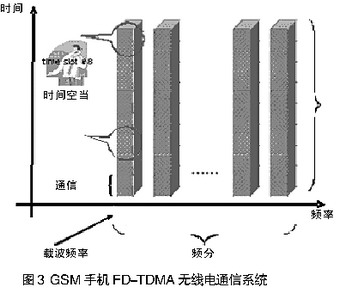 GSM(全球通)手機(jī)標(biāo)準(zhǔn)使用頻分多路傳輸和時分多路傳輸,同時傳送大量電話,如圖3所示。