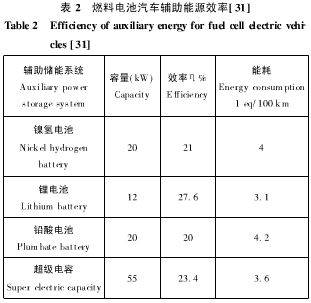 燃料電池不適合作為動力系統(tǒng)的單一驅(qū)動能源,必須選用輔助能源系統(tǒng)合理補充驅(qū)動電動汽車所需的能量,覆蓋功率波動,提高峰值功率,吸收回饋能量,改善燃料電池輸出功率的瞬態(tài)特性。目前各大汽車開發(fā)商采用了輔助動力,來提高燃料電池汽車的性能(表1所示)。