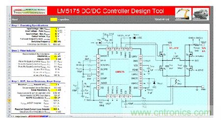 圖3. 步驟1到3分別是指運(yùn)行技術(shù)規(guī)格、電感器篩選和電流感測。這個(gè)電路原理圖是根據(jù)輸入的以及計(jì)算出來的組件值自動(dòng)組裝而成。