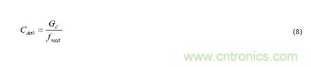 下一個(gè)選項(xiàng)是使用方程式8來選擇抖動(dòng)電容值,以設(shè)定展頻調(diào)制頻率[5],在這里,Gd是與控制器相關(guān)的電導(dǎo)系數(shù)。
