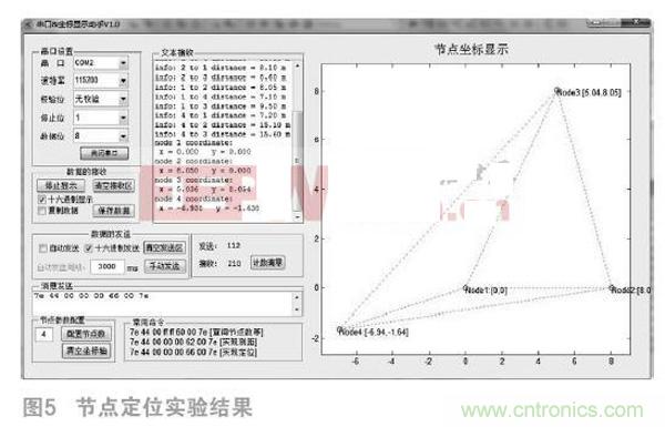 本文設(shè)計了節(jié)點的通信方式及消息,在統(tǒng)一的消息格式內(nèi),根據(jù)所要執(zhí)行的任務(wù)的不同,具體設(shè)計各種應(yīng)用消息;其次,根據(jù)系統(tǒng)需求和節(jié)點類型的不同,設(shè)計并說明了不同節(jié)點的程序流程;同時設(shè)計了良好的人機交互定位界面;最后,對網(wǎng)絡(luò)節(jié)點的測距性能和定位性能進(jìn)行實驗分析,驗證了系統(tǒng)基本滿足對測距范圍和測距精度要求和節(jié)點定位的技術(shù)要求。