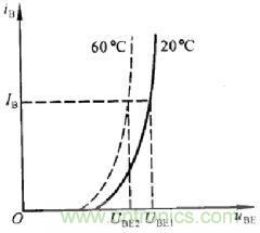 溫度對(duì)輸出特性的影響:如圖3實(shí)線,虛線分別所示為20℃和60℃時(shí)的特性曲線,可見(jiàn),溫度升高時(shí),由于輸入特性左移,導(dǎo)致集電極電流增大。