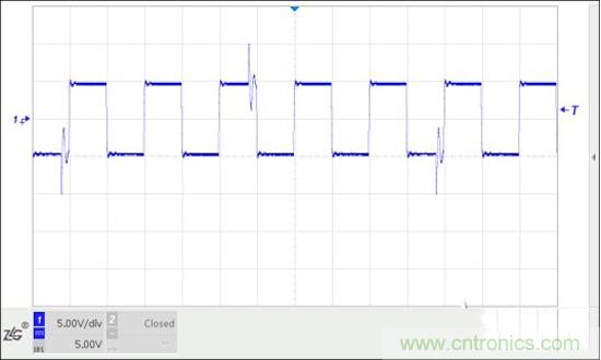 調試中發(fā)現,驅動器上電但未開啟輸出,電機轉軸處于自由靜止狀態(tài),測量到一個較大的值。用示波器測量傳感器輸出,發(fā)現100kHz脈沖上每個幾個周期出現一些尖峰振蕩,經過比較器后多了些脈沖,導致測頻結果高于100kHz。那么干擾信號從何而來?首先懷疑是驅動器,驅動器斷電干擾消失。把傳感器電纜從傳感器處拔出,100kHz和干擾都沒有了。證明干擾由驅動器產生,通過驅動器輸出線、電機、扭矩傳感器及連線耦合到功率分析儀。