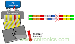 圖1:將VBUS短路到CC和SBU管腳將導(dǎo)致下游電路故障