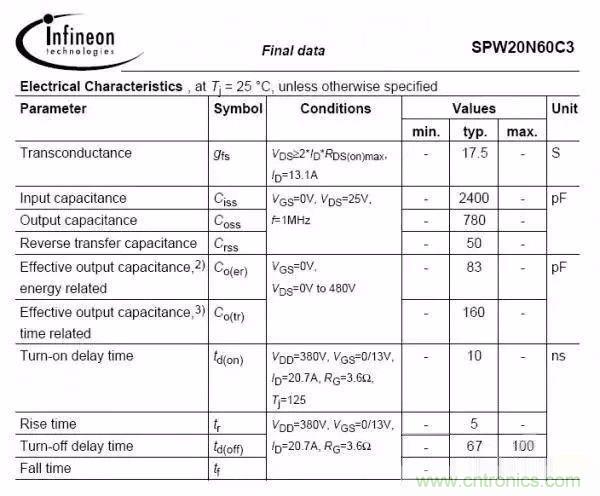 參照以上兩圖,是不同型號的MOS管,對比下輸入結(jié)電容和輸出結(jié)電容,2400PF與800PF;780PF與2200PF;一看就知道第一個(gè)規(guī)格是快管,第二個(gè)是慢管,這時(shí)候決定開關(guān)速度還要與驅(qū)動(dòng)電阻匹配;常規(guī)情況驅(qū)動(dòng)電阻在10R-150R比較多,選取驅(qū)動(dòng)電阻與結(jié)電容有關(guān),針對快板驅(qū)動(dòng)電阻可適當(dāng)增大,慢管驅(qū)動(dòng)電阻可適當(dāng)減??; 對于二極管,有肖特基二極管,快回復(fù)二極管,普通二極管,還有一種用的比較少的SIC二極管,開關(guān)速度SIC二極管幾乎為零,等于是沒有反向恢復(fù),開關(guān)輻射最小,并且損耗也最小,唯一的缺點(diǎn)就是價(jià)格昂貴,故很少用;其次就是肖特基二極管,正向壓降低,反向恢復(fù)時(shí)間短,依次是快回復(fù)和普通二極管;需要在損耗和EMC之間折中;一般可采取改吸收以及套磁珠等措施整改EMC;