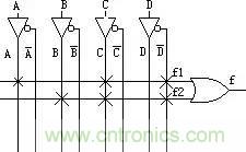 PLD將以下面的方式來實現(xiàn)組合邏輯f: