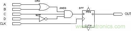 下面我們以一個簡單的電路為例,具體說明PLD是如何利用以上結(jié)構(gòu)實現(xiàn)邏輯的,電路如下圖: