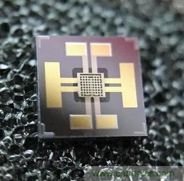 圖1:具有集成電極和傳感薄膜的MEMS MOS氣體傳感器芯片,SiN和SnO2層為透明結(jié)構(gòu)MOS氣體傳感器的運行特性主要由金屬氧化物表面的表面反應主導。由目標氣體引起的MOS材料電阻的變化可以用一個簡單的分壓器電路和一個參考電阻來測量。據(jù)麥姆斯咨詢介紹,Micralyne的平臺提供多種作為傳感層的金屬氧化物薄膜可供選擇,包括SnO2、TiO2、ZnO、In2O3以及碳納米結(jié)構(gòu)膜。