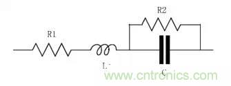片狀電容在射頻電路中的應用十分廣泛,它可以用于濾波器調頻、匹配網(wǎng)絡、晶體管的偏置等很多電路中,因此很有必要了解它們的高頻特性。電容的高頻等效電路如圖所示,其中L為引線的寄生電感;描述引線導體損耗用一個串聯(lián)的等效電阻R1;描述介質損耗用一個并聯(lián)的電阻R2。