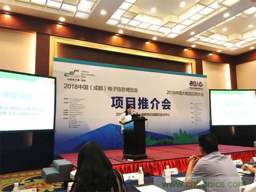 2018年5月24日下午, 2018中國(guó)(成都)電子信息博覽會(huì)暨2018中國(guó)大數(shù)據(jù)應(yīng)用大會(huì)在成都世紀(jì)城國(guó)際會(huì)議中心召開(kāi)項(xiàng)目推介會(huì)?;顒?dòng)由中電會(huì)展與信息傳播有限公司總經(jīng)理宋偉主持,四川省經(jīng)濟(jì)和信息化委員會(huì)電子處蘇平處長(zhǎng),成都市經(jīng)濟(jì)和信息化委員會(huì)通用電子處副處長(zhǎng)鄧敏出席推介會(huì)并致辭,中國(guó)電子器材總公司總經(jīng)理陳雯海向來(lái)賓介紹了2018中國(guó)(成都)電子信息博會(huì)項(xiàng)目整體情況和2018中國(guó)大數(shù)據(jù)應(yīng)用大會(huì)項(xiàng)目的相關(guān)進(jìn)展情況,四川省大數(shù)據(jù)產(chǎn)業(yè)聯(lián)合會(huì)常務(wù)副秘書長(zhǎng)朱小軍,代表合作伙伴在推介會(huì)上進(jìn)行了發(fā)言,四川省其他30家相關(guān)學(xué)協(xié)會(huì)等也參加了本次活動(dòng)。另外,現(xiàn)場(chǎng)還有超過(guò)50家媒體及100家成都及四川地區(qū)電子信息產(chǎn)業(yè)相關(guān)企業(yè)及組織出席項(xiàng)目推介會(huì)。