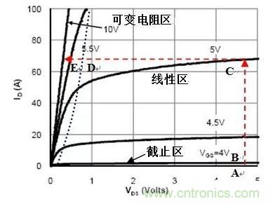 【導(dǎo)讀】功率MOSFET有三個(gè)工作狀態(tài),在漏極導(dǎo)通特性曲線上,對(duì)應(yīng)的是三個(gè)工作區(qū):截止區(qū),線性區(qū)和可變電阻區(qū)。注意到:MOSFET的線性區(qū)有時(shí)也稱為:恒流區(qū)或飽和區(qū)。