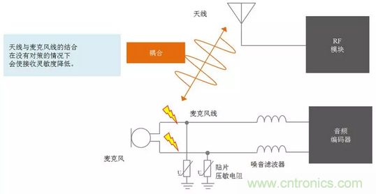 通過同時使用噪音濾波器與貼片壓敏電阻改善接收靈敏度,抑制ESD(靜電放電)