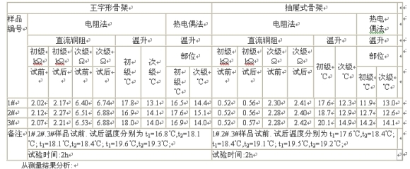 熱電偶法和電阻法變壓器溫升測量結(jié)果表(純電阻負(fù)載)
