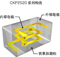 - CKP2520系列是在薄膜上印刷內(nèi)部電極,通過通孔實現(xiàn)層間的連接,使內(nèi)部電極在螺旋上形成的