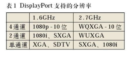DisplayPort是一個(gè)高帶寬、雙向顯示互連,可以實(shí)現(xiàn)內(nèi)置和外置顯示連接的通用新一代接口標(biāo)準(zhǔn)。憑借可擴(kuò)展SerDes技術(shù)及改變通道數(shù)和速度,顯示系統(tǒng)可采用DisplayPort接口標(biāo)準(zhǔn)來支持各種分辨率,使其成為數(shù)字電視的理想選擇。表1顯示了一些由不同速度和通道數(shù)支持的DisplayPort的分辨率實(shí)例。