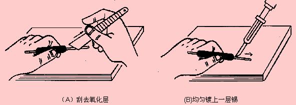 ?。ㄒ唬┣宄附硬课坏难趸瘜?br /> 1.可用斷鋸條制成小刀。刮去金屬引線表面的氧化層,使引腳露出金屬光澤。