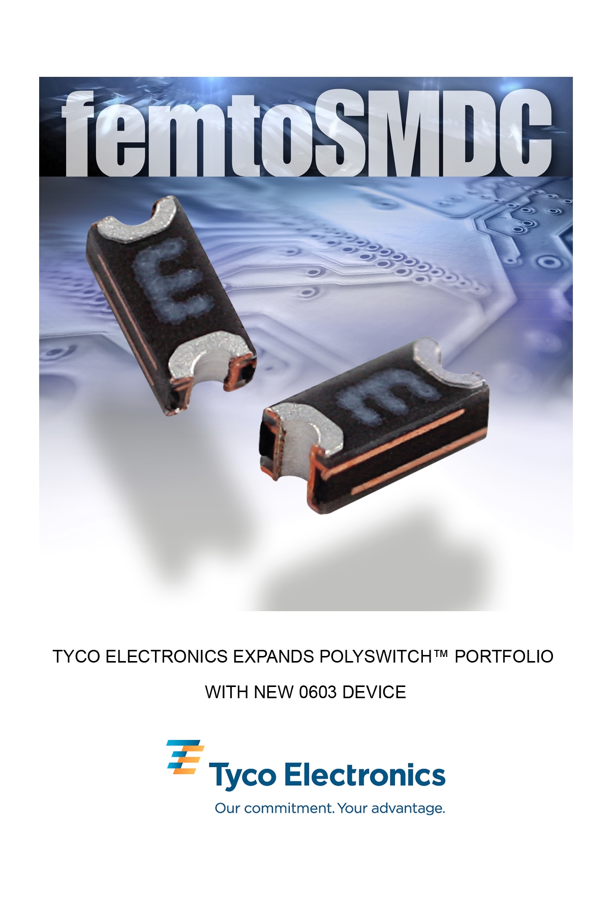 泰科電子(Tyco Electronics)今天宣布其廣受歡迎的表面貼裝PolySwitch™器件系列再添一款符合行業(yè)標(biāo)準(zhǔn)的新型0603器件。femtoSMDC016F器件的占板面積不到上一代器件的一半,并且有助于保護(hù)敏感電子電路免受過(guò)流及過(guò)溫事故的損壞。該器件的快速動(dòng)作時(shí)間和可復(fù)位功能可幫助制造商降低保修費(fèi)用和提高各種便攜式電子產(chǎn)品的可靠性,比如以下產(chǎn)品: