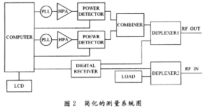 本文中所有PIM的測(cè)量都是采用Jonitcom公司的PIM分析儀,外型如圖1所示。其簡(jiǎn)化的測(cè)量系統(tǒng)圖如圖2所示。
