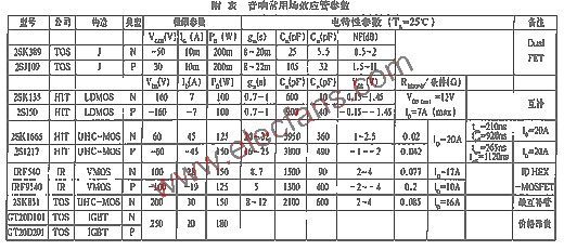 音響常用場效應(yīng)管的參數(shù)如下表: