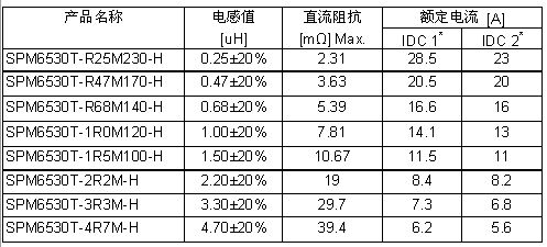 TDK股份有限公司旗下子公司TDK-EPC公司開(kāi)發(fā)出汽車剎車系統(tǒng)和汽車前燈、發(fā)動(dòng)機(jī)電子控制單元(ECU)電源電路的DC-DC轉(zhuǎn)換器的扼流線圈用SMD型功率電感器SPM6530-H,并已于2011年4月起投入量產(chǎn)。