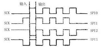 SPI總線有四種工作方式,其中使用的最為廣泛的是SPI0和SPI3方式(實線表示):