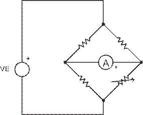 圖 4 所示的惠斯通橋接是一款我們所熟悉的電路,主要用于高精度地測量電阻。1833 年, Hunter Christie 發(fā)明了這種電路,隨后 Charles Wheatstone 對其進(jìn)行了研究,并做了廣泛的分析,Wheatstone 橋接便因此得名。Wheatstone 還首次運(yùn)用獨(dú)特的鉆石形風(fēng)格繪制這種電路,并一直沿用至今。