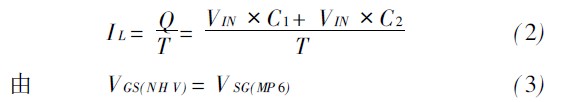 當(dāng)功率管柵壓穩(wěn)定時,電荷泵充入的柵電荷等于限流管放掉的柵電荷。限流管泄放電流為: