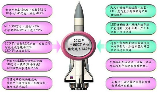 - 2012年大陸ICT產(chǎn)業(yè)成長(zhǎng)率預(yù)估為14.9%,產(chǎn)值可望突破10兆元