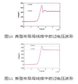 本節(jié)主要通過實(shí)驗(yàn)進(jìn)行典型布局下的母線排igbt過電壓波形與采用優(yōu)化后布局的比較,如圖9所示。實(shí)驗(yàn)使用80kva/400v變流器系統(tǒng)。圖10和圖11為實(shí)驗(yàn)得到的igbt過電壓波形,其中圖11為采用典型布局的h橋母線排中測(cè)得的igbt過電壓波形,圖11為采用優(yōu)化后布局的母線排中測(cè)得的igbt過電壓波形。由圖中可以看出新型母線排布局有良好的抑制過電壓效果。