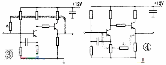 如圖3所示放大電路,由于反饋導(dǎo)線越過放大器基極電阻??赡墚a(chǎn)生寄生耦合,影響電路工作。圖4所示電路的布設(shè)將反饋元件置于中間,輸出導(dǎo)線遠離前級元件,避免干擾。