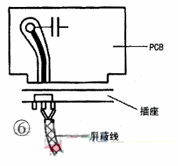 高頻電路中,印制導(dǎo)線分布參數(shù)對信號影響大,且不容易進行阻抗匹配,可局部使用專用屏蔽線連接,如圖7所示。