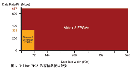 對于將存儲(chǔ)器接口帶寬推至極限的應(yīng)用,如每引腳 667 Mbps 的 DDR2 SDRAM,Xilinx 提供了 Virtex-5 FPGA?! ?br />