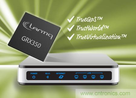 基于MIPS的GRX350網(wǎng)絡(luò)處理器把電信級(jí)的邊緣路由器功能集成到其先進(jìn)的家用網(wǎng)關(guān)架構(gòu)中,其中包括多個(gè)中央處理器(CPU)和帶有內(nèi)置GPHY、3x3 Wi-Fi、Voice 和DECT 電話的千兆交換機(jī)。遵從Lantiq的AnyWAN™理念,該芯片組可輕松地處理任何種類的廣域網(wǎng)連接,包括全新的G.fast標(biāo)準(zhǔn)。