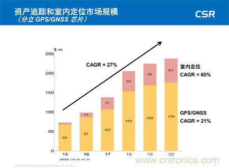 資產(chǎn)追蹤和室內(nèi)定位市場規(guī)模(分立 GPS/GNSS 芯片)