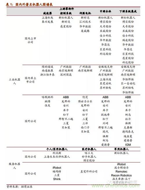 【導(dǎo)讀】隨著中國(guó)人口紅利消失,機(jī)器人不僅在制造業(yè)上正在替代工人,還將在軍事、服務(wù)、娛樂(lè)等領(lǐng)域取代人類(lèi),“鋼鐵俠”已不僅僅存在于美國(guó)科幻電影中,而正走入我們的生活。本篇報(bào)告對(duì)機(jī)器人行業(yè)及龍頭上市公司進(jìn)行分析,對(duì)比日本、美國(guó)、德國(guó)機(jī)器人行業(yè)技術(shù)路線、發(fā)展路徑、下游市場(chǎng)分布,對(duì)國(guó)內(nèi)機(jī)器人行業(yè)發(fā)展方向和空間進(jìn)行預(yù)測(cè),挖掘中國(guó)股市的tenbager。一起跟隨我愛(ài)方案網(wǎng)小編瞧瞧吧(做好準(zhǔn)備,很長(zhǎng)的喔)!