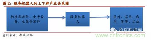 服務(wù)機(jī)器人行業(yè)生產(chǎn)所用的主要零部件為自動(dòng)焊機(jī)、電子器件、微處理器、機(jī)器人用伺服電機(jī)、高精度減速器、機(jī)加件、氣動(dòng)元器件、傳感器、電池、單板機(jī)等,歸屬于標(biāo)準(zhǔn)零部件、電子設(shè)備以及電子元器件等。服務(wù)機(jī)器人產(chǎn)業(yè)的下游則主要是醫(yī)療、家用、農(nóng)用、軍事等行業(yè)和領(lǐng)域。