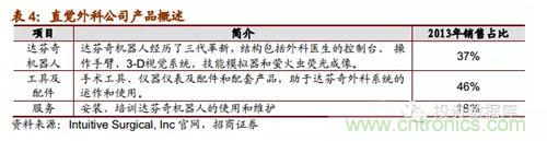 直覺(jué)外科公司是全球領(lǐng)先的微創(chuàng)機(jī)器人輔助手術(shù)機(jī)器人公司,2013年?duì)I收達(dá)22.65億美元,截止2014年第一季度達(dá)芬奇機(jī)器人累計(jì)銷(xiāo)售數(shù)量為3039臺(tái),2014年8月總市值達(dá)159.60億美元。